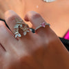 Discover the elegance of our sterling silver ring, beautifully inlaid with charming pink heart-shaped zircon stones and shimmering white zircons.
