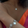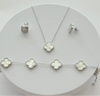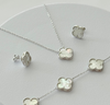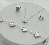 A stunning Van Cleef style white gold-plated Sterling silver set with mother-of-pearl. Including Necklace, Earrings and the bracelet